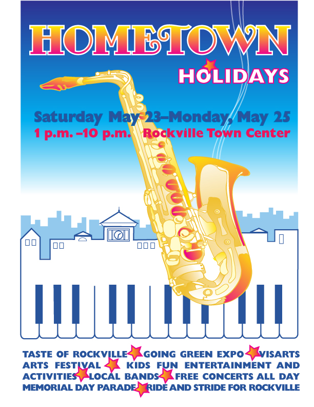 This is a poster designed in Adobe Illustrator for a Rockville, MD contest. The sax and piano keys were drawn in Adobe Illustrator, using an original line drawing as a template.
