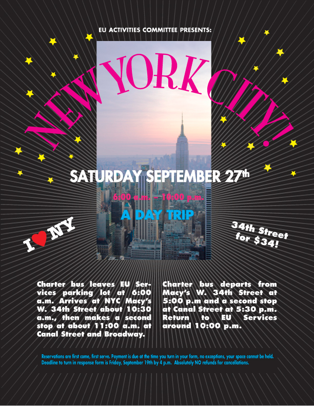 This is a poster designed by Debbie Stevens. The photograph was taken by Debbie from the top of Rockefeller Center, NYC. This poster was designed in Adobe Illustrator.